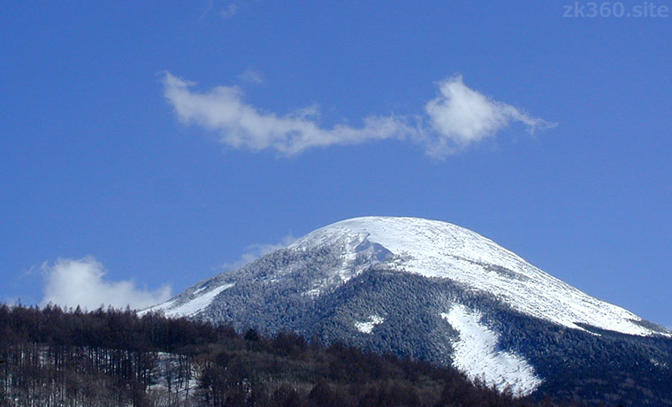 最初に登ったのは2001年3月。このときは雪山体験ツアーだったので、当然、雪景色でした。ただ、ガスに巻かれて山頂部の展望はまったくありませんでした。そのとき撮ったのが下の2枚です。