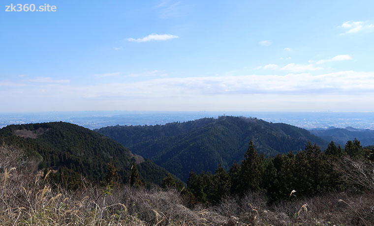 山頂広場の西の端に大見晴台があって、天気がいいと富士山を望める。ただし、くっきり見えるのは稀。秋から冬の午前中は見える可能性が高い。昼過ぎには、たいてい雲に隠れてしまう。